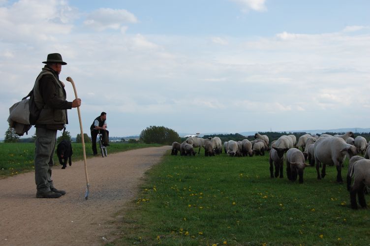 Wir haben gestern auch "um die Ecke" eine riesige Schafherde gesehen - mit Schäfer und Hütehund - so richtig klassisch. Einfach toll.
