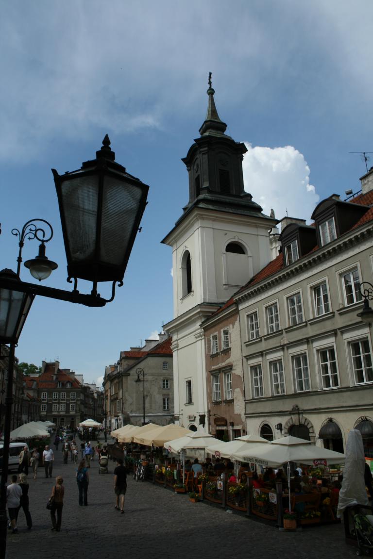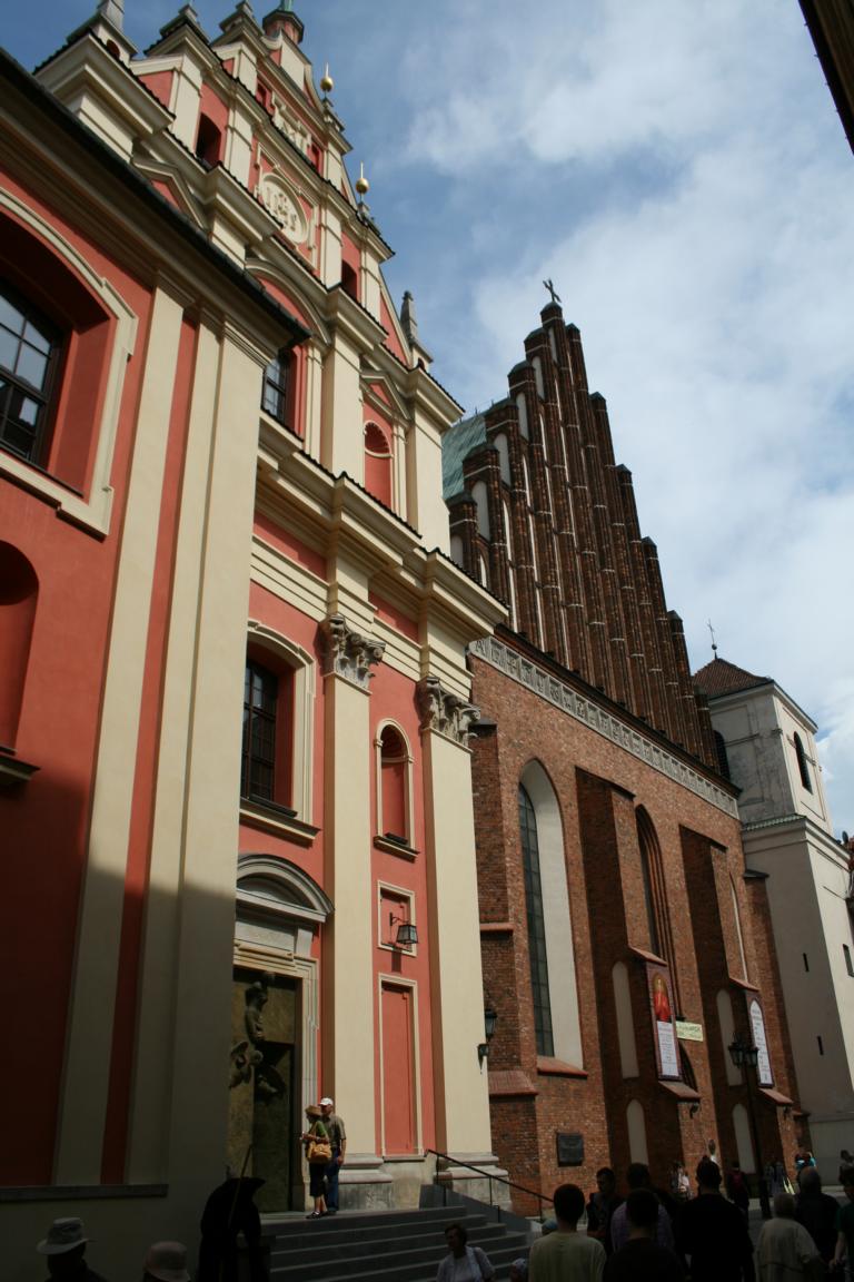 Wir kommen zur Kirche der Heimsuchung Mariens (Marienkirche). Diese wurde bereits ab 1411 im Gotischen Stil erbaut und ist damit eine der ältesten Kirchen in Warschau. Die Kirche wurde seitdem mehrmals umgebaut, so kam beispielsweise Ende des 16. Jahrhunderts der Glockenturm dazu. ich meine mich erinnern zu können, dass der Turm noch der Originalbau sein soll, während andere Teile wiederaufgebaut wurden. Die Kirche ist auch vom anderen Weichselufer gut zu erkennen und ist damit ein sichtbarer Teil der Skyline Warschaus.