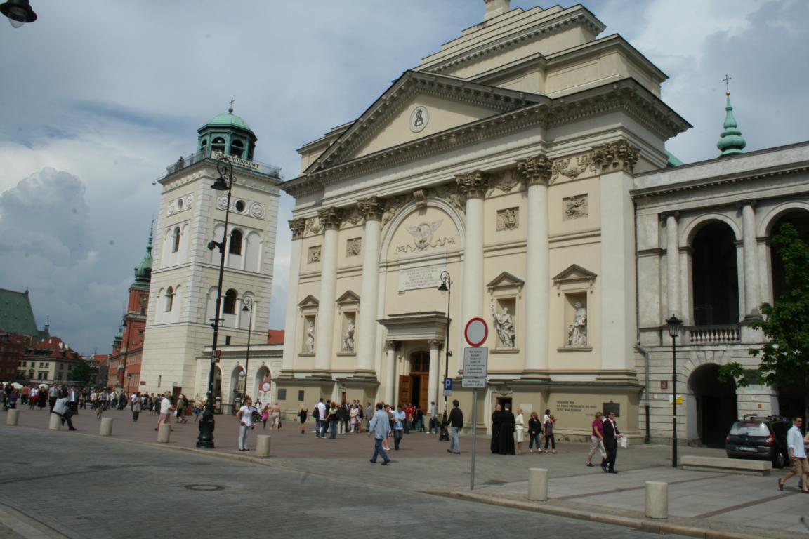 Wir verlassen den Markplatz Richtung Schloss. Dies müsste die Johanneskathedrale (Johannesdom) sei. Auch sie musste nach dem Zweiten Weltkrieg vollständig neu erbaut werden. In der Kathedrale sind auch viele bedeutende polnische Persönlichkeiten (Bischöfe, der letzte König von Polen (Stanislaus II. August Poniatowski), die ersten beiden polnischen Präsidenten (Narutowicz und Moscicki) bestattet.