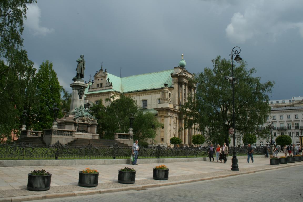 Vor einem weiteren mächtigen Gebäude, dem Staszic-Palais, wo heute der Sitz der Leitung sowie die Bibliothek der Polnischen Akademie der Wissenschaft untergebracht ist, ist das Kopernikus-Denkmal.1944 wurde das Denkmal bereits zum Verschrotten gebracht, aber irgendwie gerettet. Es gibt zwei weitere identische - da nach dem gleichen Modell gegossene- Denkmäler noch in Chicagog und Monetral