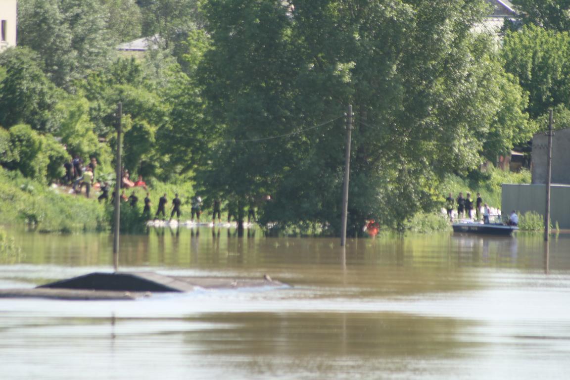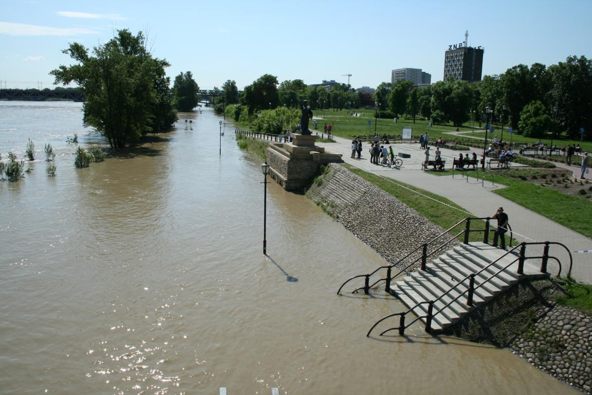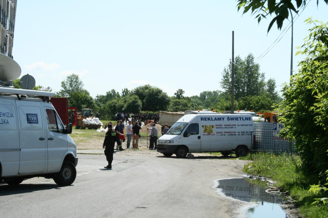 Wir haben den Eindruck, dass Wasser ist etwas gesunken, aber die Wege sind weiterhin unter Wasser. Ich komme echt ins Schwitzen unter der Sonne. Wir gehen auf die Brücke und hinter uns hören wir das nervtötende Gejaule eines Polizeiwagens. Eines? Nee, zwei, drei,vier....Über uns ein Hubschrauber - genau alles in die Richtung, wo wir hinwollen, Stadtteil Praga. Was ist da los? Wir gehen erst einmal weiter. Hinter der Brücke an der Kreuzung ist unser geplanter Weg zuende.Straße gesperrt, hier geht nichts mehr geradeaus. Also biegen wir nach links ab und überqueren eine Brücke ein Stück später - und da sehen wir dann Leute Sandsäcke schleppen.... Da scheint ein Problem zu bestehen und die Polizei hat sämtliche Zugänge zu diesem Bereich abgesperrt. Wir versuchen es immer wieder näher heranzukommen, keine Chance. -