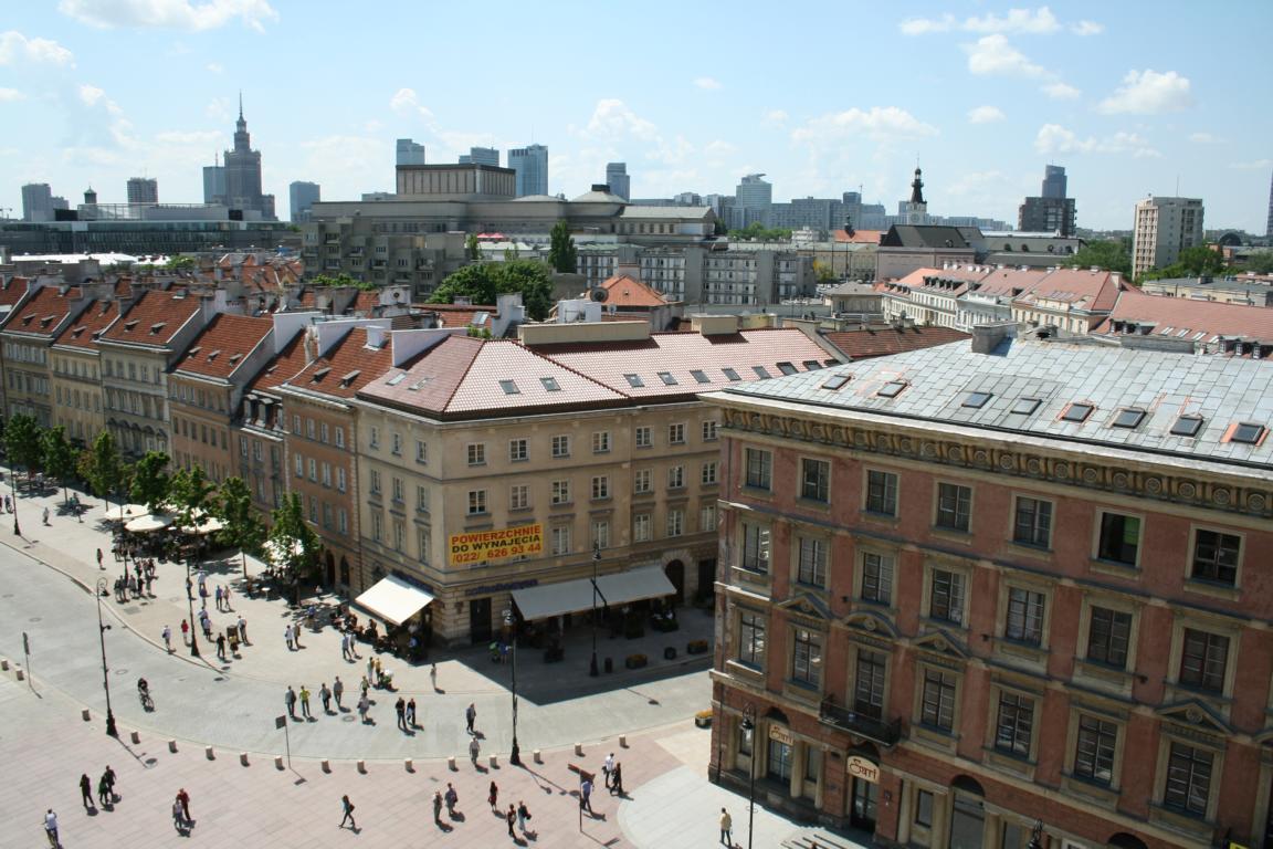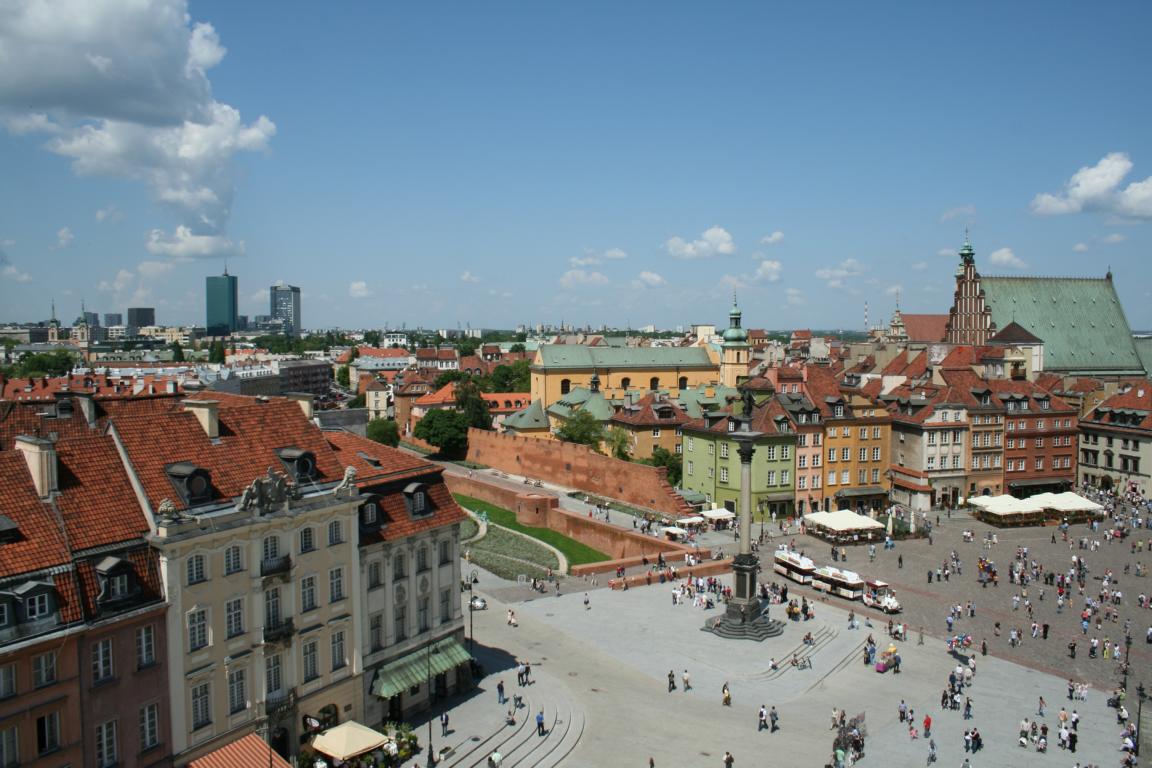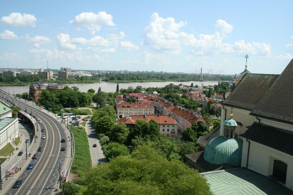 Sehr gut sieht man von hier oben den Unterschied zwischen dem alten Warschau und dem modernen Teil, der überall im Hintergrund durchschimmert