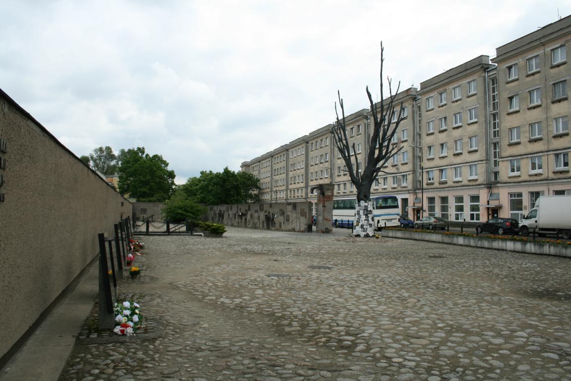 Völlig unerwartet stoßen wir auf das Gefängnismuseum „Pawiak“. Das Museum befindet sich in den Kellern eines ehemaligen Gefängnisses und war 1939-1944 eines der Hauptgefängnisse der Gestapo. Da wir noch einiges heute auf dem Programm haben, gehen wir nicht rein, sondern schauen uns nur die Gedächtnistafeln draußen am Baum und der Mauer an
