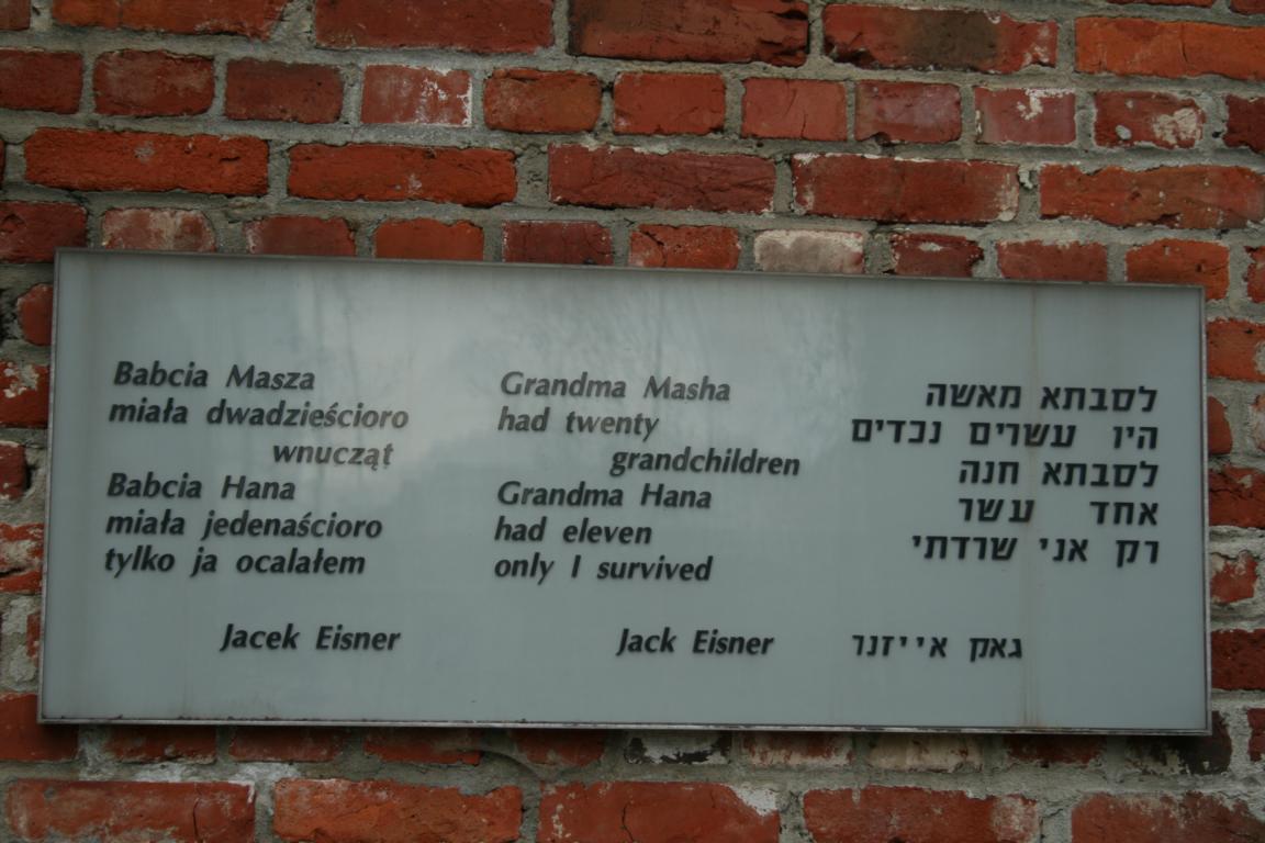 Betroffen macht die Inschrift:Großmutter Masha hatte 20 Enkel, Großmutter Hana 11 - nur ich habe überlebt Jack Eisner -