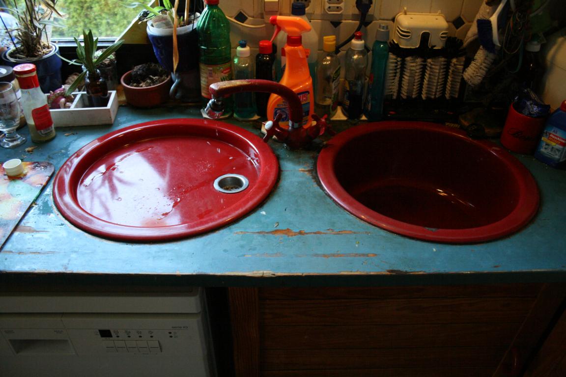 Rote Spülbecken - Wer hat eine Idee