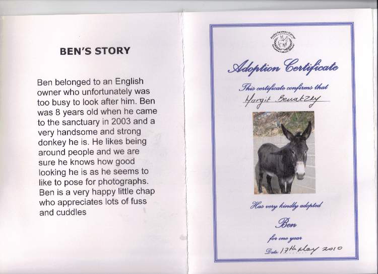 So, nun habe ich sie adoptiert und heute haben mir meine 2 Esel geschrieben und Fotos geschickt.