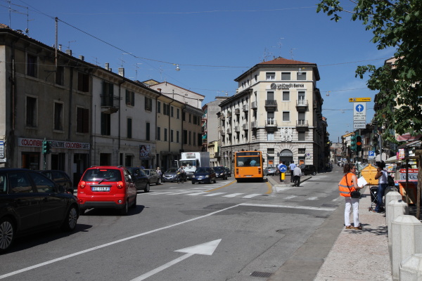 Vom Flughafen aus fährt ein Bus für 4,50 € zum Hauptbahnhof. Von dort sind wir in die Linie 21 umgestiegen und bis zum Porta Vescovo gefahren. Wie gut, dass wir einen Sitzplatz bekommen haben, denn nach und nach füllte sich der Bus und sie standen fast übereinander. Die Einzelfahrt kostet im Übrigen 1,20 € Fahrscheine kauft man selber im Bus im Automaten, also immer schön Kleingeld dabei haben.