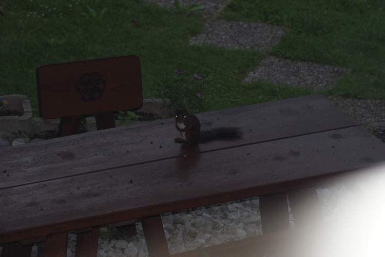 Heute hat es sich aber gelohnt, weil ich als ich in den Garten blickte, ein Eichkätzchen total aus der Nähe sah.