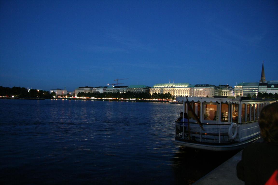 Gut hört sich auch das aus dem Programm (siehe link oben) an Zitat:"Wenn ca. 300 Taucher mit Fackeln und ca. 200 beleuchtete Kanuten als flimmernder Wasserkorso von der Lombardsbrücke in die Binnenalster bis zum Jungfernstieg ziehen, begleitet von stimmungsvoller Musik - dann ist Alstervergnügen Mondnacht. Das entstehende Gefühl lässt sich schwer beschreiben, man muss es selbst erleben."
