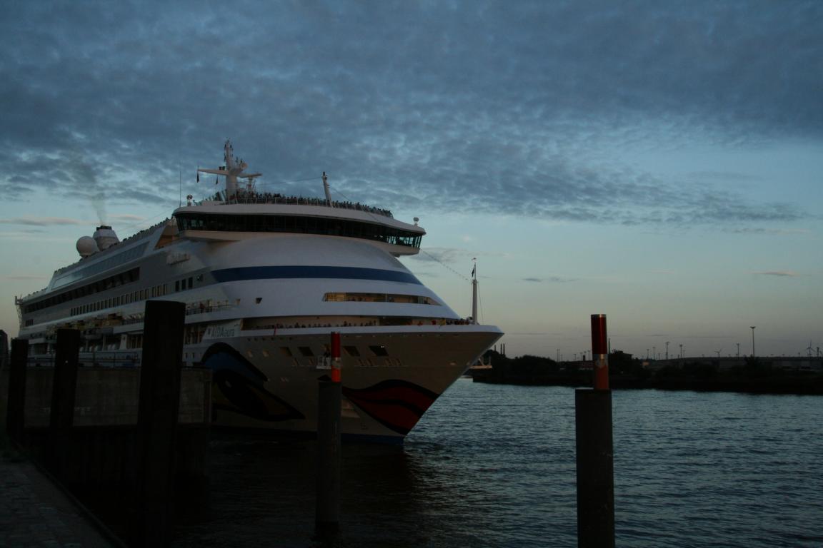 Wir haben heute meinen Neffen beim Kreuzfahrtterminal abgeliefert und er ist dann mit Freundin und AIDA AURA gen Sonnenuntergang und gen Norwegen davongeschippert