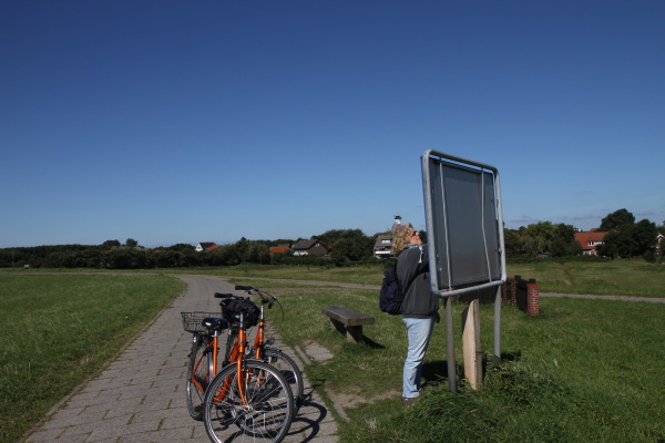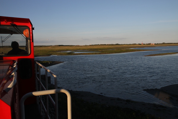 Wir kamen jedenfalls pünktlich kurz nach 17 Uhr am Fähranleger an und parkten unser Auto auf dem Parkplatz. Wangerooge ist autofrei. Die Parkplaätze sind recht eng und den Schlüssel mussten wir abgeben. Der Parkwächter war sehr witzig... Vermutlich hängt es mit eventuellem Hochwasser und Deichbrüchen zusammen.