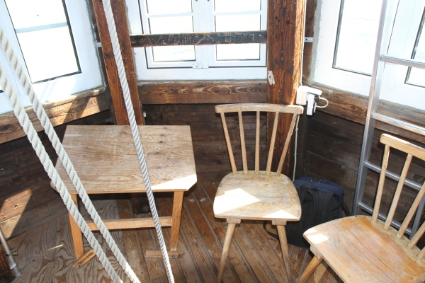 In dem kleinen Zimmer hoch oben im Westturm befinden sich nur ein paar Stühle und ein kleiner Klapptisch.