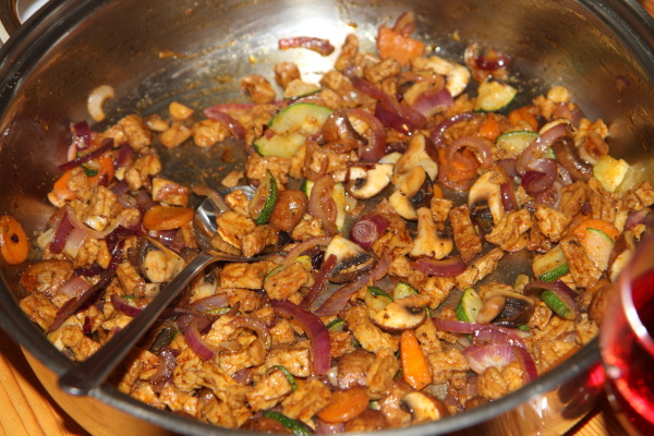 Das war gut und eigentlich zu viel. Auf dem Nachhauseweg kauften wir für unser Abendessen ein, es gab eine Gemüsepfanne mit Salat und als Nachtisch kauften wir uns jeder eine selbstgemachte Praline, dazu gab es dann einen Bio-Wein aus Frankreich....