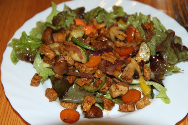 Am Abend gibt es einen Salat mit gebratenem Gemüse. Lecker...