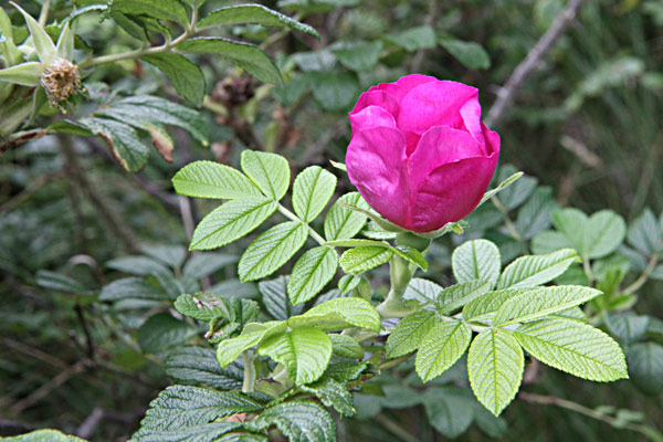Überall auf der Insel finden wir die Rosa Rugosa, die man auch Kamschatka-Rose nennt, da sie aus Kamschatka stammt. Uns fiel sie schon die ganzen Tage auf, denn alles steht in voller Blüte und wie sie duftet!