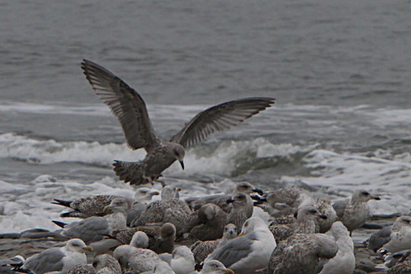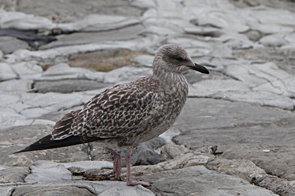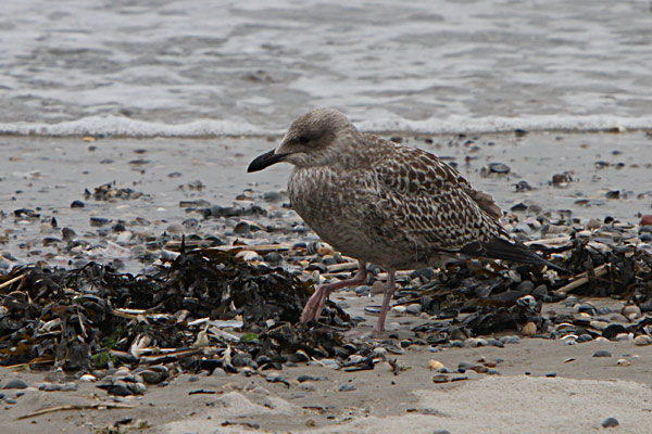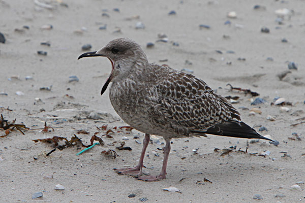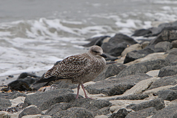 Diese braun gesprenkelten Heringsmöven sind noch jung, wenn sie "erwachsen sind, dann haben sie auch weißes Gefieder und dunkelgraue Flügel mit weißen Spitzen wie ihre Eltern.