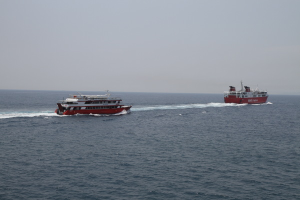 Also besorgte Oma Fährkarten für das nächste Schiff, das nach Piräus ging. Es war die Autofähre Nefeli, die um 12 Uhr gehen sollte. Wir warteten und nach ein paar Minuten legte ein großes Schiff an, aber es war die Apollon Hellas. Das Schiff kam aus Piräus und Opa sagte, das würde sicher nach Hydra weiterfahren. Trotzdem fragte Oma am Schalter sicherheitshalber noch einmal nach, aber man versicherte uns, dass die Nefeli etwas später auch kommen würde.