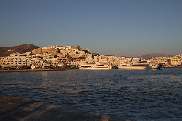 Als nächstes kam ein Flying Dolphin auch von der Hellenic Seaways, der Gesellschaft mit der wir die Fähre nach Naxos und auch die Überfahrt nach Piräus gebucht hatten. Also drehten wir um und gingen mit allem zum zweiten Anleger. Man sagte uns, dass man die Fahrkarten zwar umtauschen könnte, aber mit diesen nicht auf den Flying Dolphin könnte.