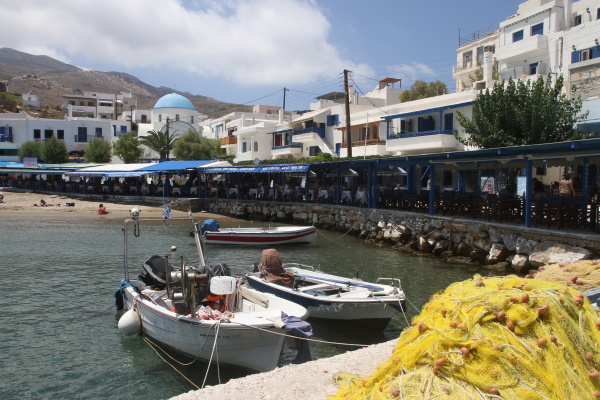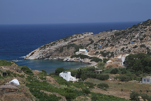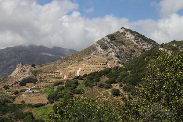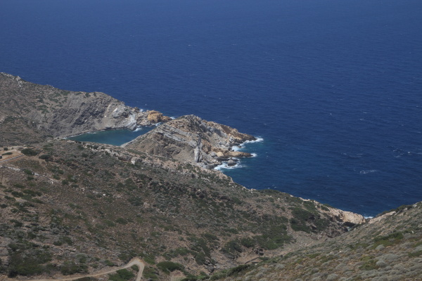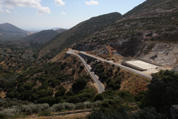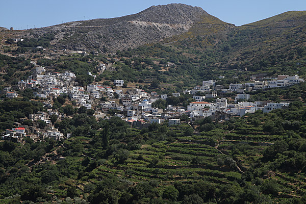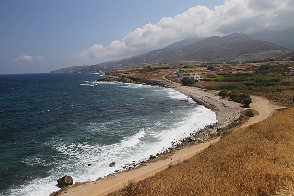 In Apollonas, einem kleinen malerischen und dem einzigen Fischerort an der Nordküste, machten wir eine Pause. Dann fuhren wir wieder in die Berge. Die Straßen sind recht gut zu fahren, aufpassen sollte man immer und vor allem genügend Benzin im Tank haben. Die Tankstellen sind rar.