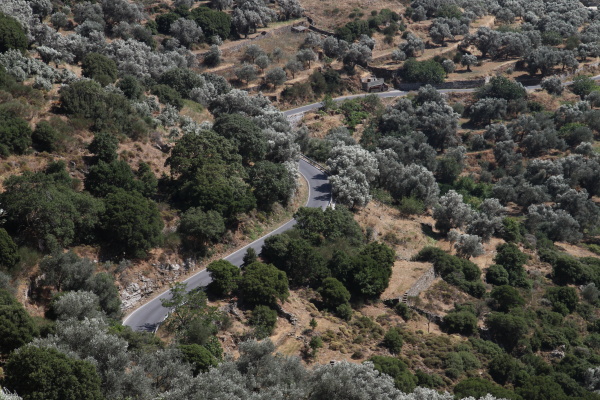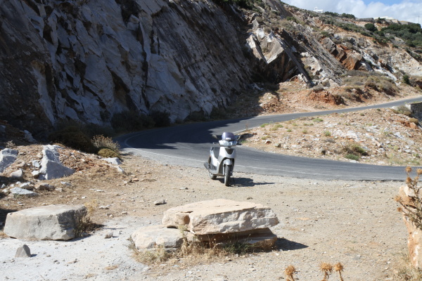 Die Route führte uns über Komiaki, Koronas und Aperathos, so dass wir oberhalb von Filotio auskamen. Ab und zu eine Serpentine, immer schön von oben in Tal schauen, ja das macht schon Spaß. Es sind nur ganz wenige Fahrzeuge unterwegs, meistens Touristen.