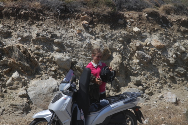 In Filoti gab es noch einmal eine Trinkpause und dann hieß es ab auf die andere Seite der Insel. Da Jenni sich ja unbedingt einmal eine Tour auf Sand- und Schotterwegen gewünscht hat, konnte Erhard ihr den Wunsch nicht ablehnen. So fuhren wir über rutschige Sandstraßen und wenn einem kein Auto entgegenkam, dann war das auch ok. Ansonsten musste man das "ausgucken"! Und ich habe dabei gewonnen und das Auto fuhr zurück, aber geschimpft hat er lauthals.