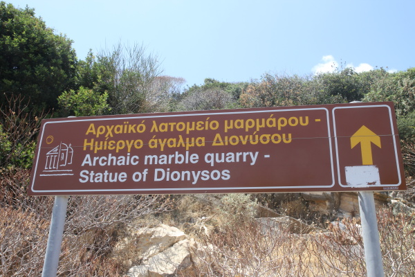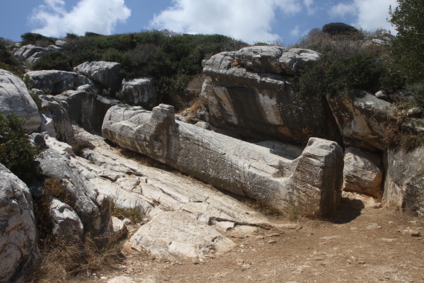 Oberhalb von dem kleinen Ort Apollonas gab es noch einen alten unvollendeten Kouros aus Marmor. Über die Herkunft ist uns nichts bekannt. Jedoch wurde er Dionysos zugerechnet.