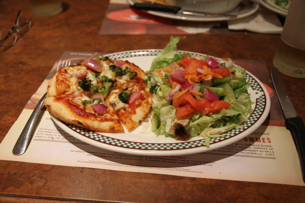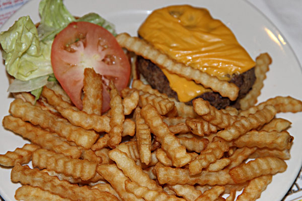 Jane den Cheeseburger als normale-Portion mit Pommes. Und klar bekam ich welche ab. Dazu gab es Cole Slaw, mhmm.Übrigens, da man hier ja hauptsächlich Cola und anderes Ungesundes trinkt, bestelle ich mir immer ein Glas Eiswasser. Das gibt es sogar umsonst!