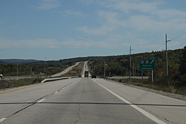 Die Fahrt geht weiter, hinter Moncton gibt es einen Kreuzung. Ich glaube, es ist ungefähr die 3. die wir sehen. Und soll ich was verraten? Wir verfahren uns.