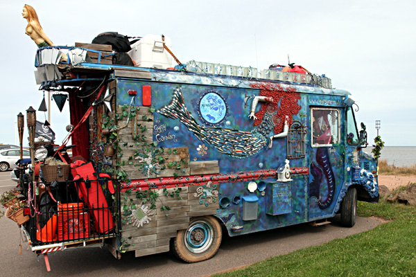 Als wir am North Cape ankommen, sehen wir einen witzigen Wagen auf dem Parkplatz stehen. So wie ich herausgefunden habe, gehört dieser Wagen einer "Mermaid" aus BC, die durch die Lande zieht, bzw. fährt.