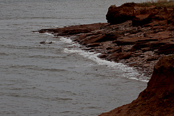 Nachdem wir im Lighthouse zu Mittag gegessen haben, machen wir machen einen langen Spaziergang. Der Wind pfeift uns um die Ohren. An dieser Stelle treffen die Northumberland Straight und der Gulf of St. Lawrence zusammen. Bei auflaufendem Wasser kann es natürlich am besten beobachtet werden. Bei Niedrigwasser also "low tide" kann man fast einen Kilometer auf dem Riff hinauslaufen.