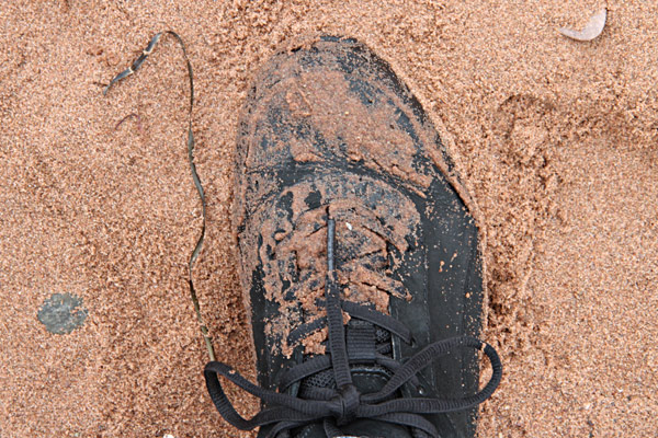 Ich wage mich zu nahe ans Meer und versinke in der Matsche...