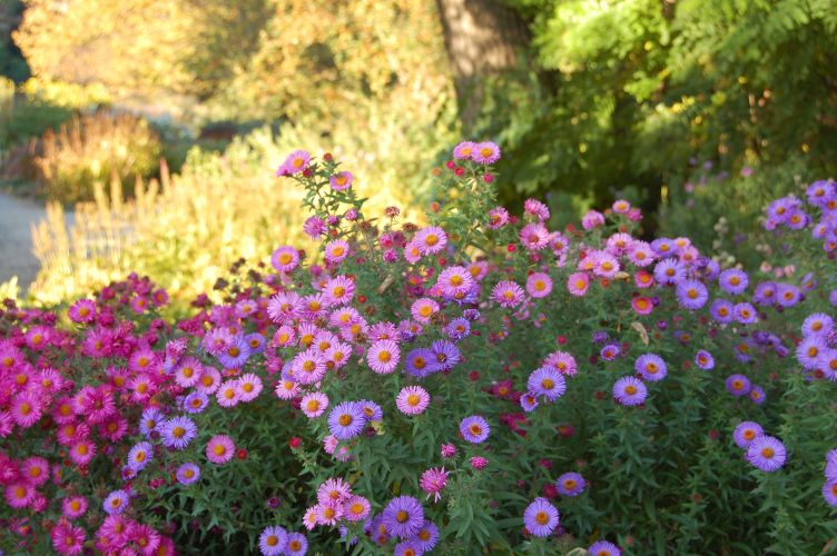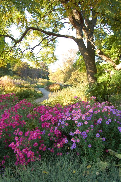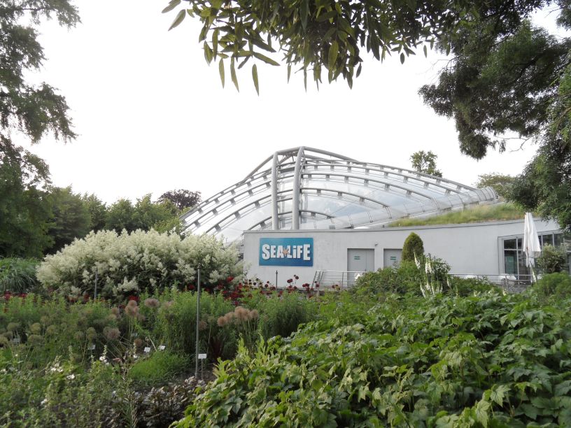 und Sonnenhüte am Blühen .Im Berggarten ist hinter diesem Hang-Beet das "Sea Life" Gebäude ,