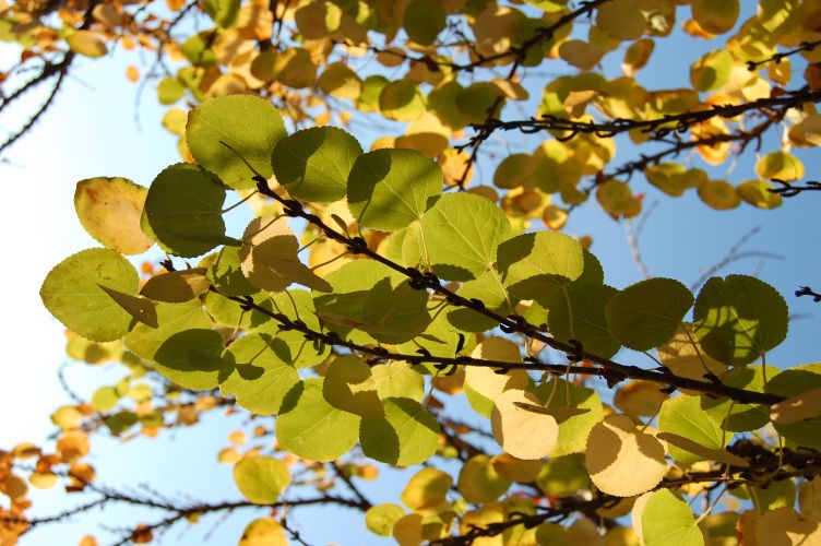 Bunt herbstlich gefärbt steht der Katsurbaum , auch "Kuchenbaum" genannt ,jetzt im Berggarten .