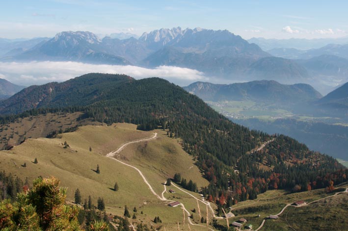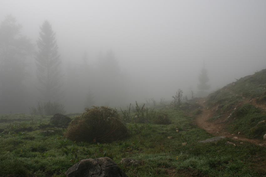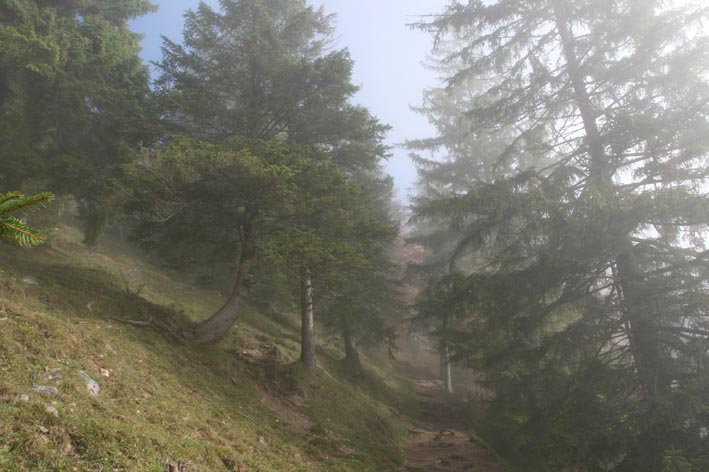 Als wir dann ein Stückchen höher kamen, löste sich links der Nebel auf und rechts schwallerten noch die Schwaden – es war eine ganz skurille Lichtstimmung....
