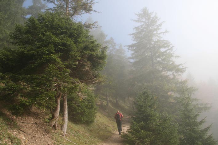 Wir starteten bei dichtem Nebel durch das Trockenbachtal.