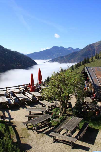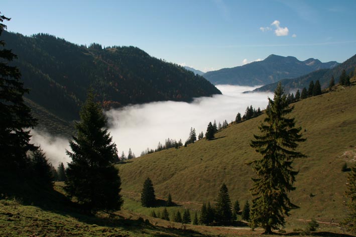 Hier in München war bereits in der Früh herrlichster Sonnenschein, aber je näher wir dem Ziel kamen, desto nebliger wurde es. In Schliersee dachten wir schon kurz daran, die Bergtour gegen einen ausgiebigen Saunatag zu tauschen ....