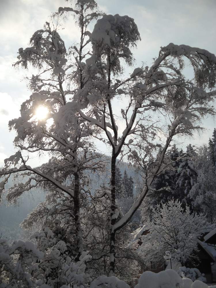 Damit ihr die schönen Seiten des Winters auch sehen könnt: wir haben wieder Neuschnee aber nun hat es aufgehört und die Sonne kommt raus, mit blauem Himmel sieht das weiss dann natürlich besonders toll aus.