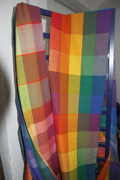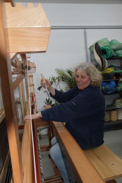 Ich denke, Maria meldet sich noch zu Wort und gibt uns ein paar Erklärungen. Übrigens die Webstühle passen natürlich nicht so ohne Weiteres in eine Wohnung, dafür sind sie viel zu groß. Und über die Anschaffungskosten schweige ich lieber.