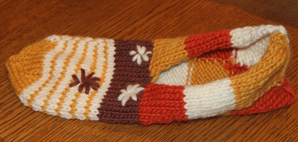 und für hinterher dachte ich, dass ich einen größeren Jonglierball in die Ferse lege, damit es schön rund wird. Ich bin mal gespannt. Muss aber beim zweiten hinten zusammennähen und die Blümchen sticken.