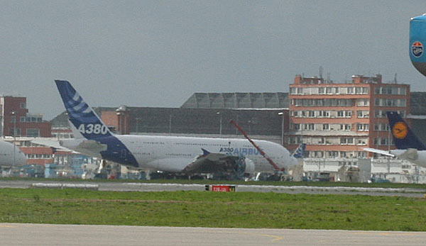 So bleiben nur die Fotos von außen und vom Flugzeug aus, beim Anflug auf Toulouse habe ich den Airbus A380 aufnehmen können, etwas pixelig, aber immerhin ![]()