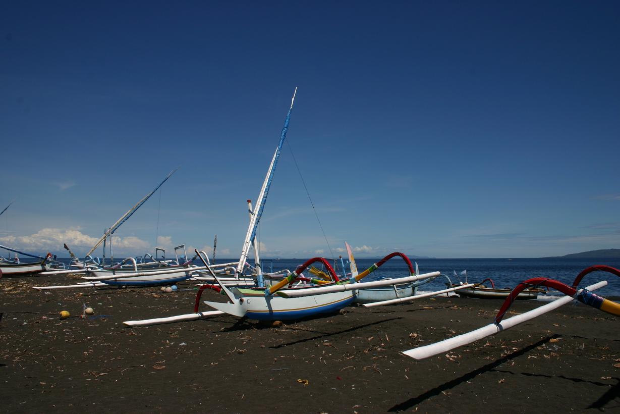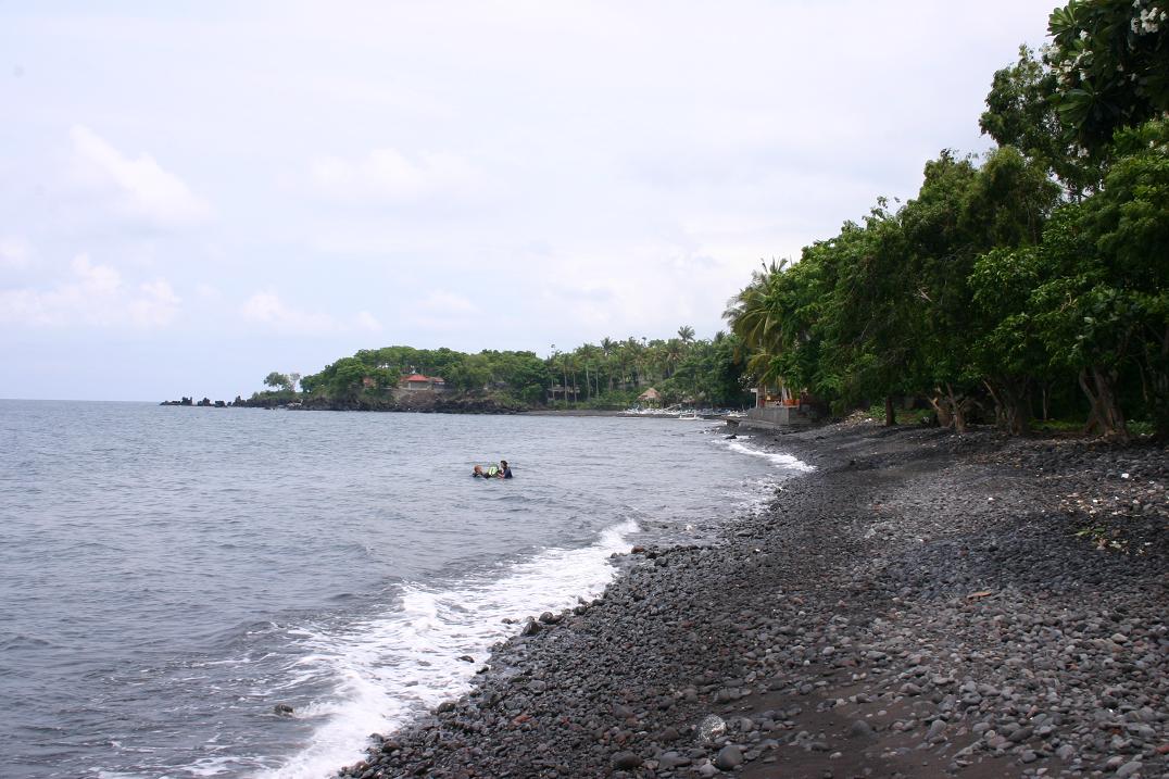 Von dort aus fuhren wir bis zur Küste auf der Nordseite und dann an der Küste entlang zurück nach Candidasa. Diese Strecke fanden wir weder besonders schön noch aufregend. In Tulamben fuhren wir noch einmal an den „Strand“. Er besteht hier aus schwarzen Steinen. Es gibt sicherlich schönere Ecken auf Bali.