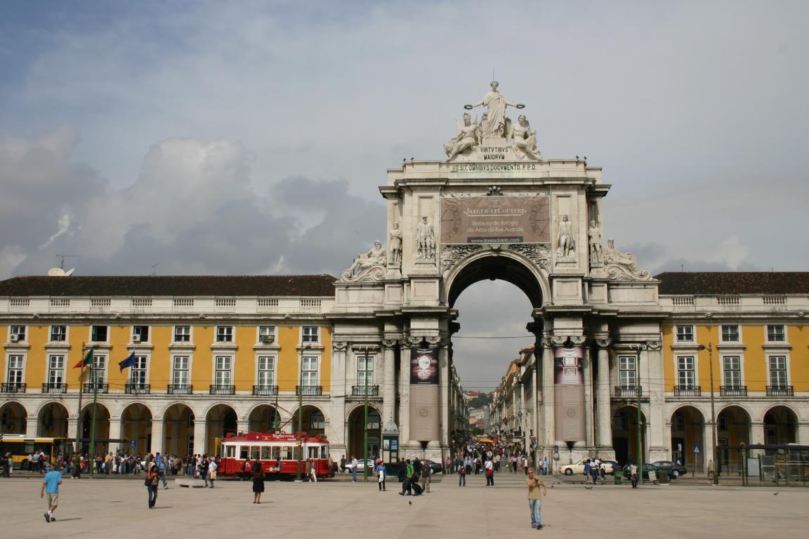 Auf den Platz gelangt man durch ein großes Tor, den Arco do Triunfo - Und auf de mPlatz steht dann das Reiterdenkmal von König Josee II-