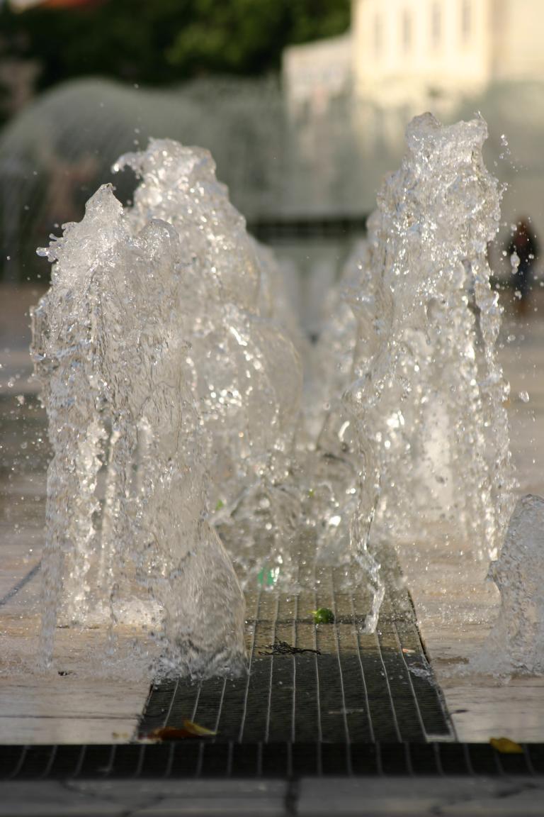 DIe Bahn fährt parallel zu der Straße zurück, die wir gekommen sind wo dann weiter unser Hotel liegt. Wir kommen an einen Platz mit verschiedenen Wasserspielen und - speziell für Maxi - ich meine dort liegt Euer Hotel... aber ich kann mich irren