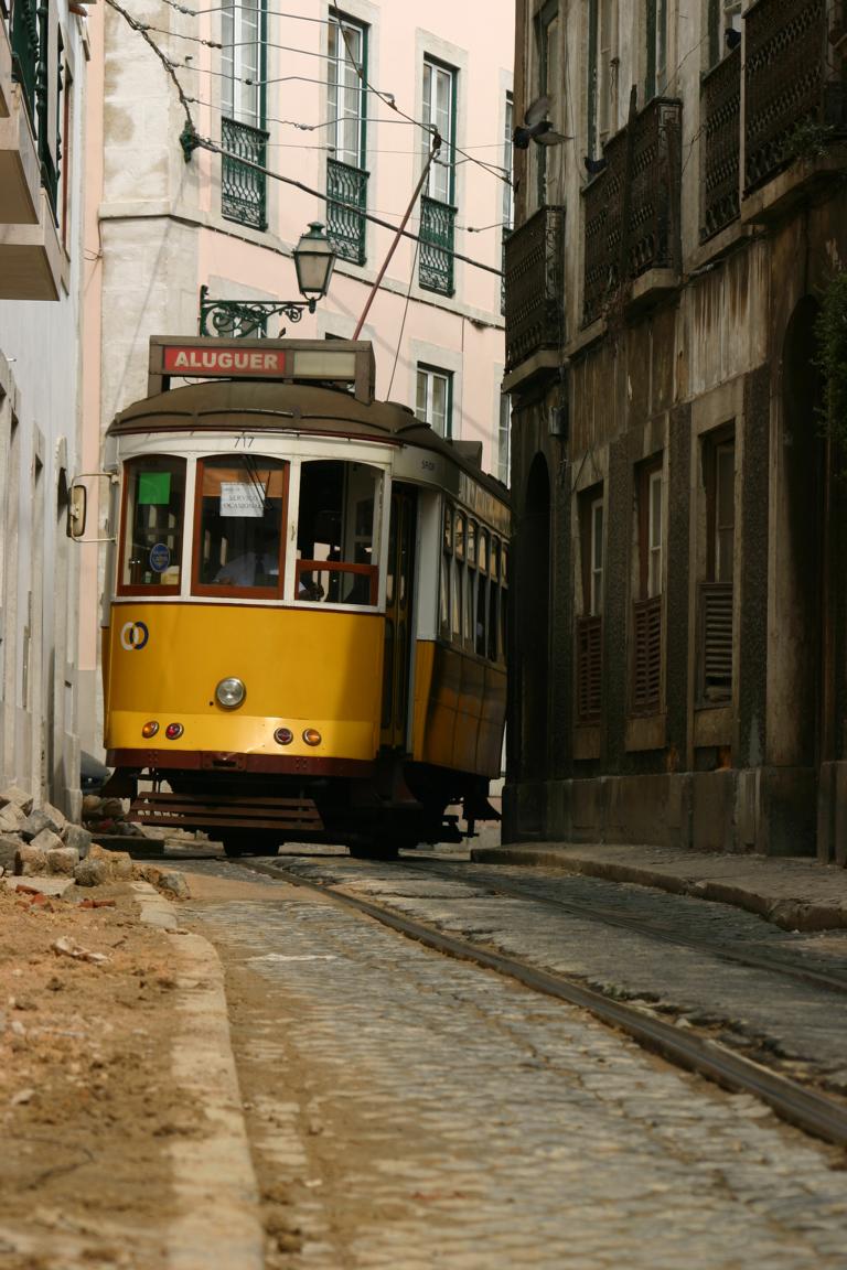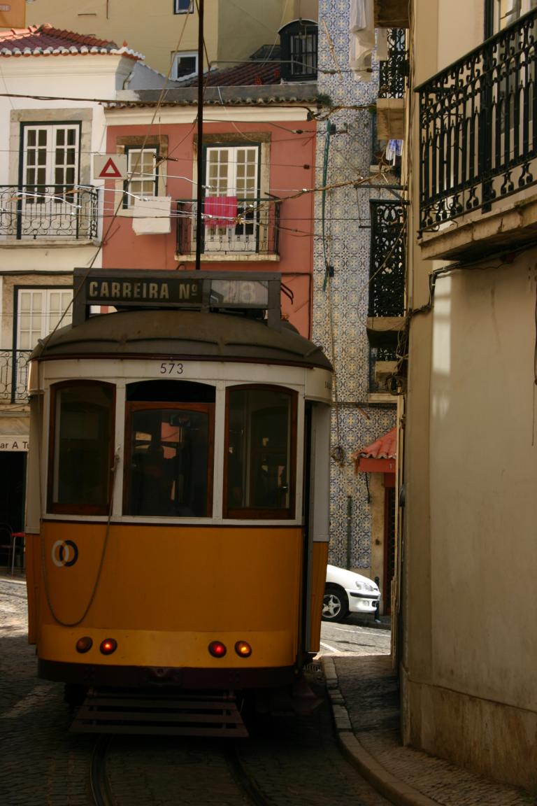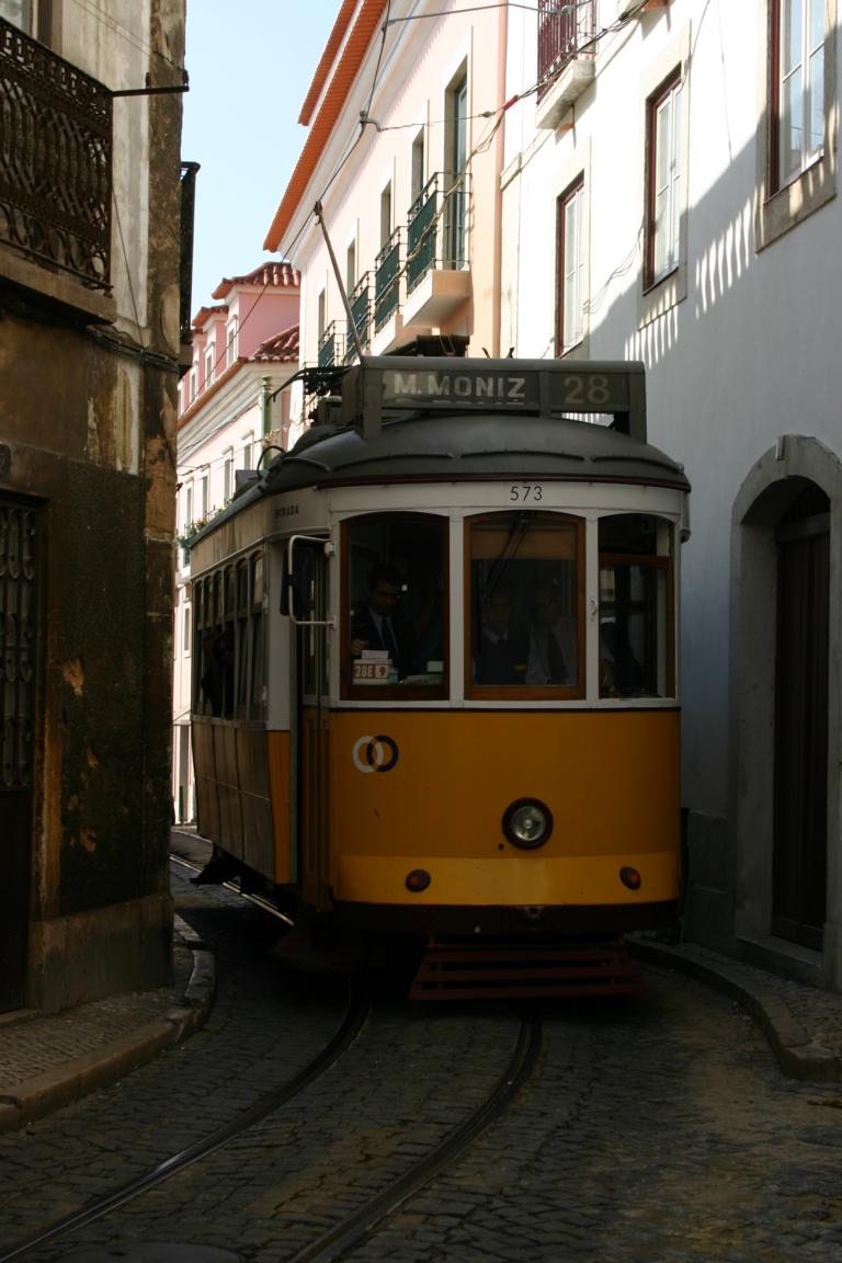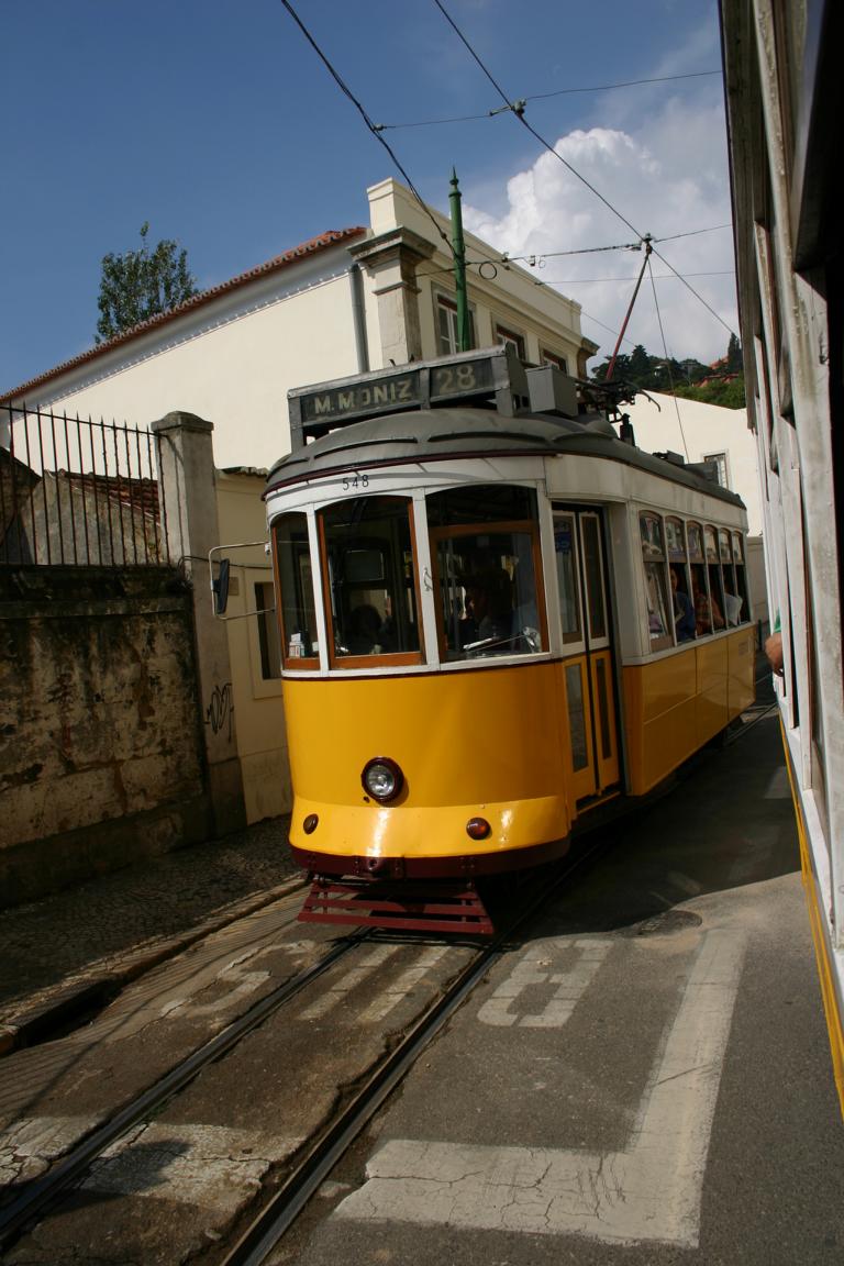 Die 28 fährt durch die Altstadtviertel Graca, Alfama, Baixa, CHiado, Estrela, Campo de Qurique zum Friedhof Prazeres einmal quer durch die Stadt -