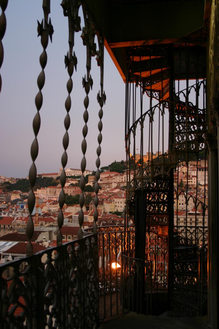 . Er hat einen Aufsatz und über eine Wendeltreppe kommt man auf eine Plattform, von der man einen herrlichen Blick auf das abendliche Lissabon hat.