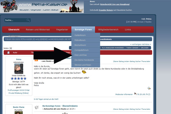wenn Ihr oben auf Sonstige Foren geht, dann könnt Ihr jetzt auch direkt zu der kleine Hundeecke oder in die Strickabteilung gehen. ich denke, das erspart ein wenig das Suchen! ![]()