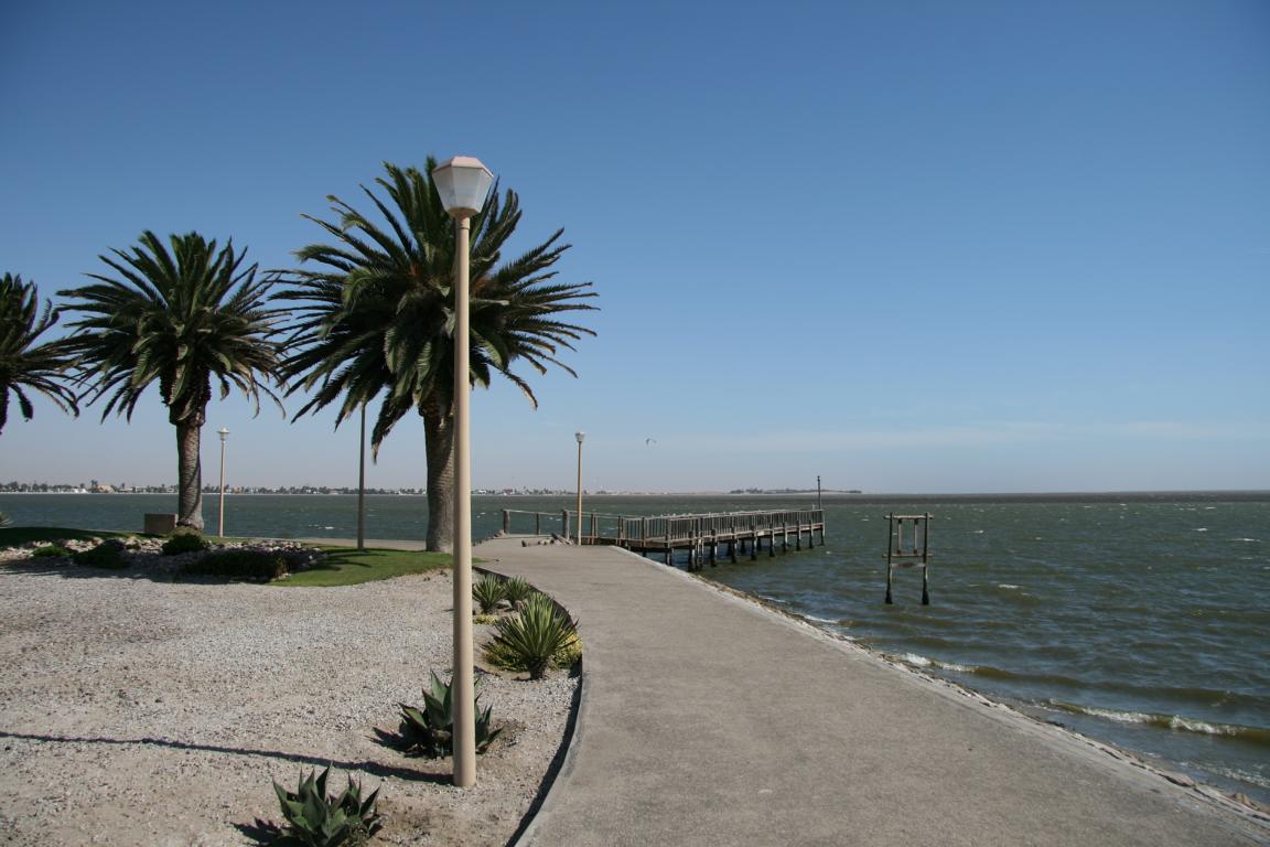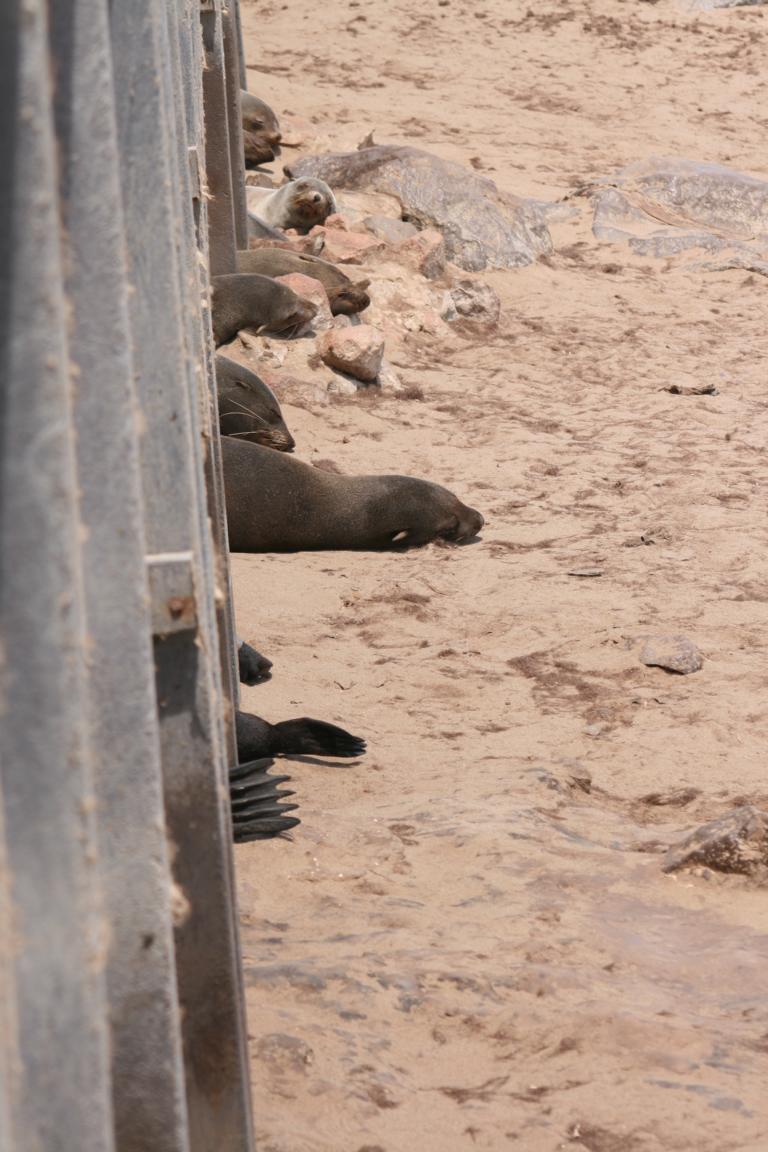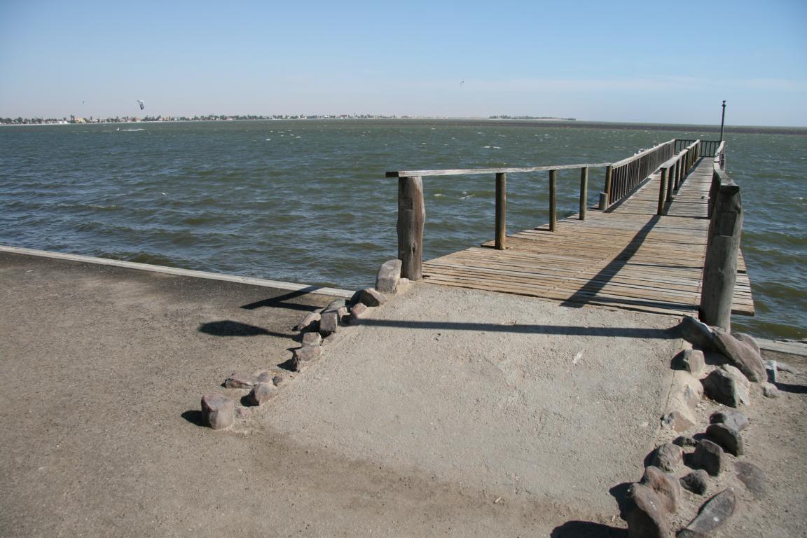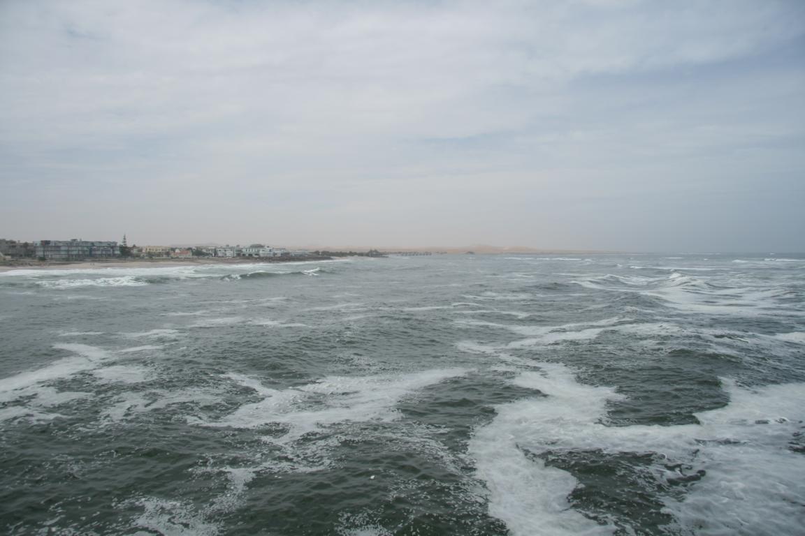 Dann entschließen wir uns gleich weiter Richtung Walvis Bay zu fahren. Die Reiseführer sagen nichts Besonderes über diesen Ort aus, außer dass er lange eine südafrikanische Ensklave war, erst am 1. März 1994 an Namibia zurückgegeben wurde und einen großen Hafen hat. Damit ist dann auch wirklich schon alles gesagt. Der Ort ist im Schachbrettsystem aufgebaut und hat gigantisch riesig breite Straßen. Das „Zentrum“ besteht aus einem Stück Hauptstraße mit ein paar Geschäften. In die Hafenanlagen kommt man nicht. Und dann gibt es wohl noch eine Lagune, in der man Flamingos sehen kann.