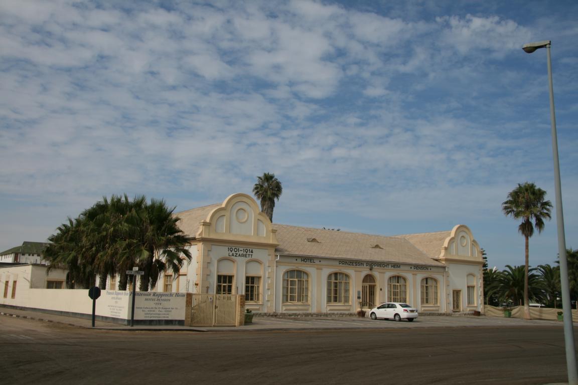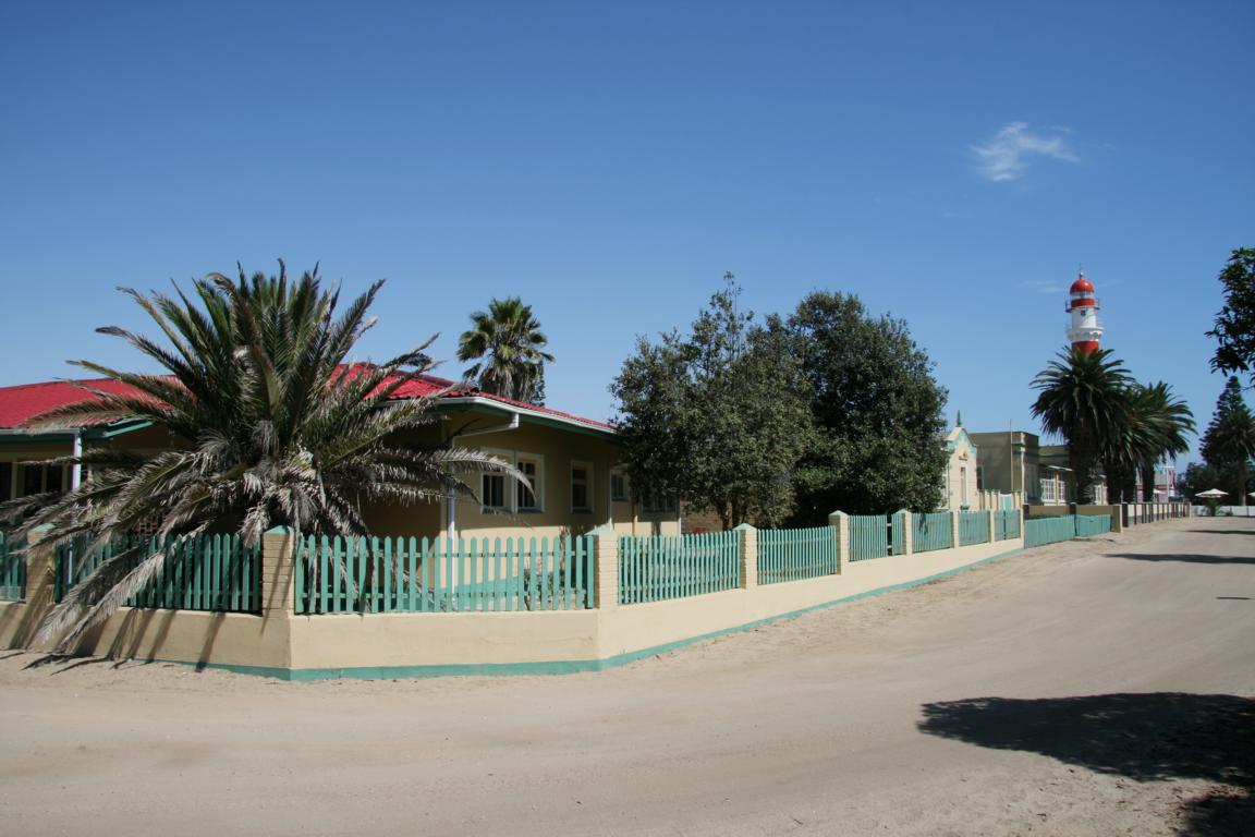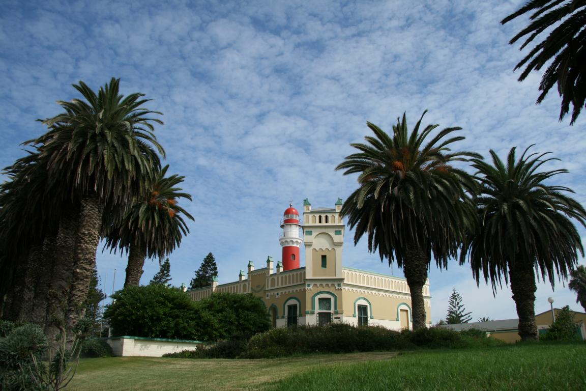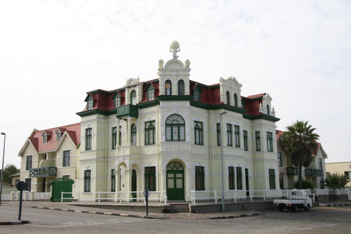 Es gibt wieder ein wunderbares Frühstück. Danach starten wir unseren Rundgang durch Swakopmund. Wir stellen das Auto nahe der Bismarkstraße ab. Dann geht es rechts in die Bismarkstraße. Dort steht das Woermannhaus. Es ist eines der ältesten Gebäude in Swakopmund und wurde 1894 für den Hamburger Spediteur Woermann errichtet. Seit 1921 war es in südafrikanischer Verwaltung und wurde 1924 bis 1972 als ein Jugendheim genutzt. Seit 1971 ist es ein Baudenkmal und zwischenzeitlich schön restauriert.