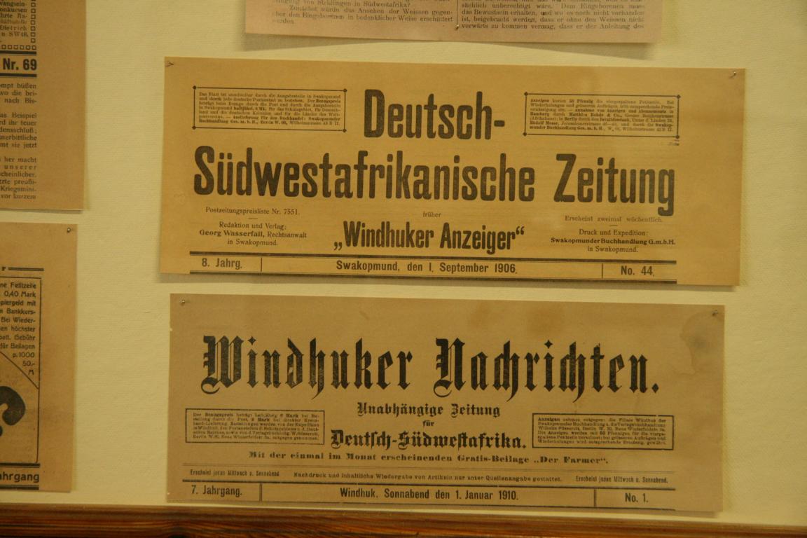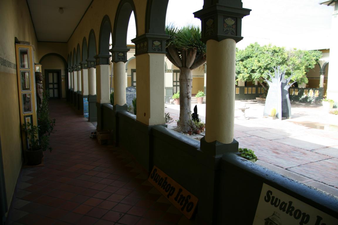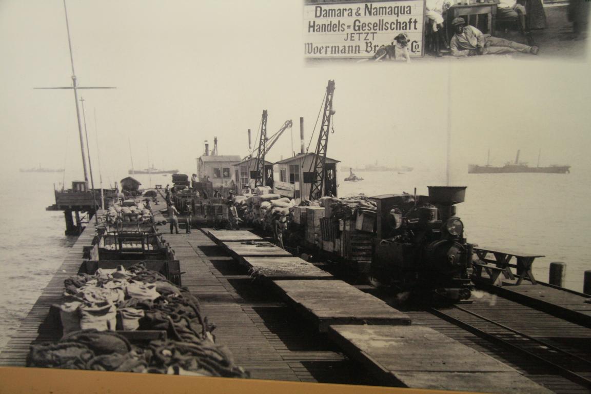 Hinter dem Leuchtturm, am Strand, liegt das Museum von Swakopmund, und da dieses sehr empfohlen wird, gehen wir dort hinein. Es ist sehr interessant, zeigt einerseits die Geschichte des Ortes – auch per Gegenüberstellung von Fotos von Früher und heute, z.B. Schulklasse, Polizei...Ferner werden die verschiedenen einheimischen Gruppierungen vorgestellt. Es gibt eine komplette Apotheke, Wohnbeispiele der Deutschen Anfang des 20. Jhd. militärische Sachen und über Tierwelt und Mineralien. Ein Besuch lohnt wirklich.