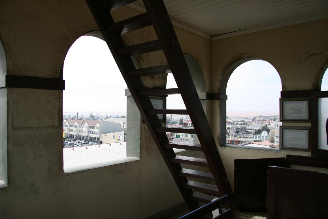 Für 15 ND pro Person kann man den Turm besteigen und hat einen wundervollen Rundblick über Swakopmund. Als „Eintrittskarte“ erhält man einen Schlüsssel für die Turmtür und muss diese auch hinter sich abschließen.